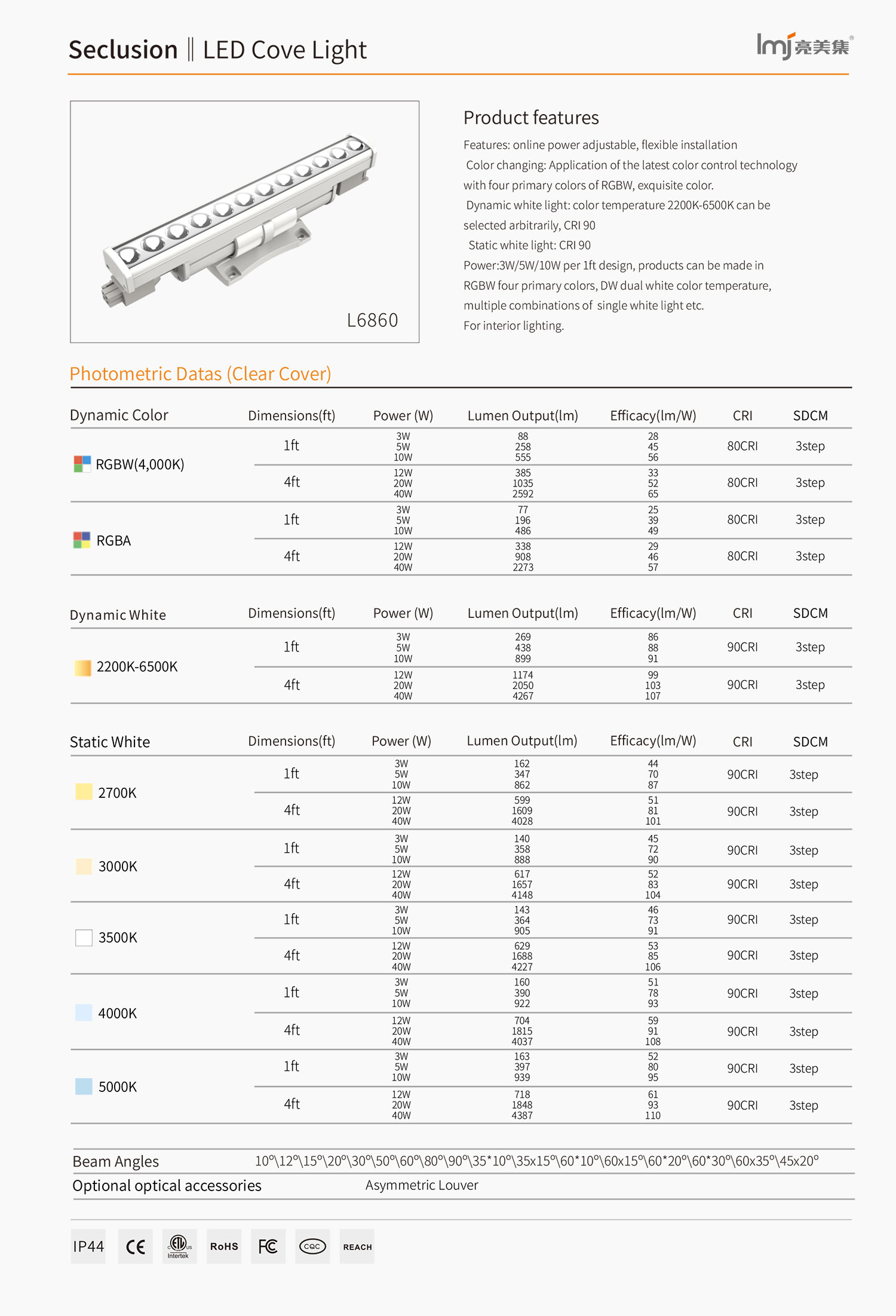 Power: 3W/5W/10W per 1ft design, products can be made in RGBW four primary colors, DW dual white color temperature, multiple combinations of single white light etc.